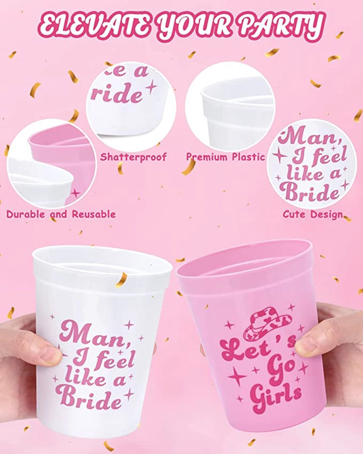 Our adorable plastic bachelorette cups are sure to be the hit of the party! Reusable and made with sturdy plastic. Put a little pizzaz into the party!