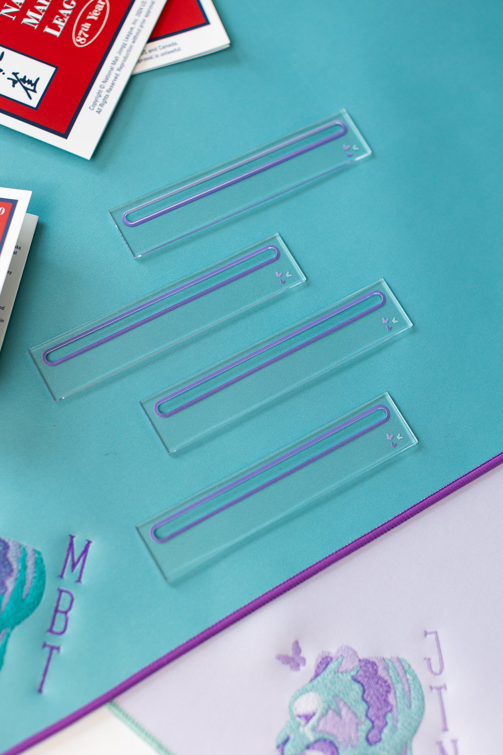 Each line finder is 6" wide and 1.25" tall and is made of clear acrylic with a purple outline to highlight your line and a fun design in the bottom right corner.