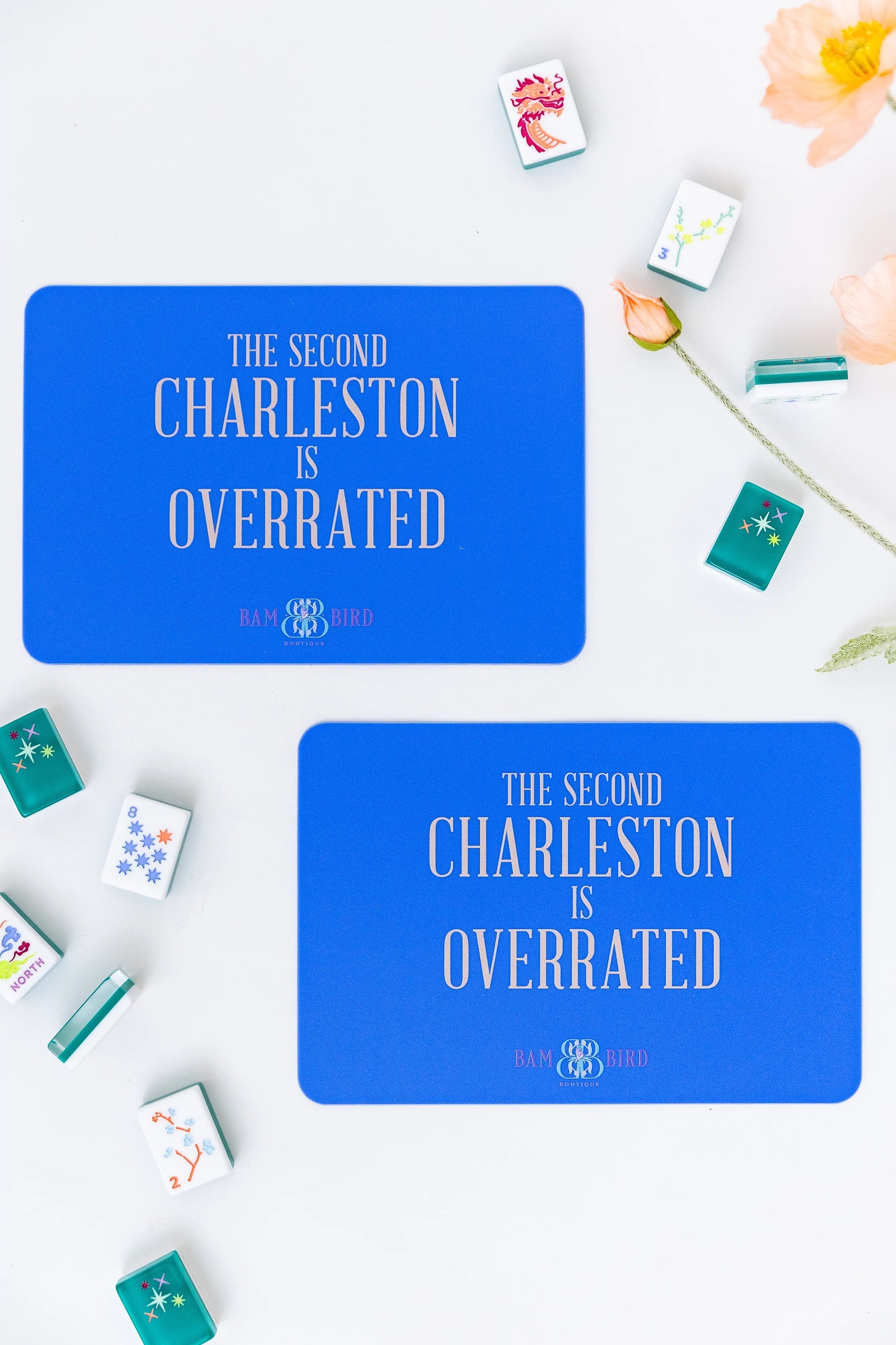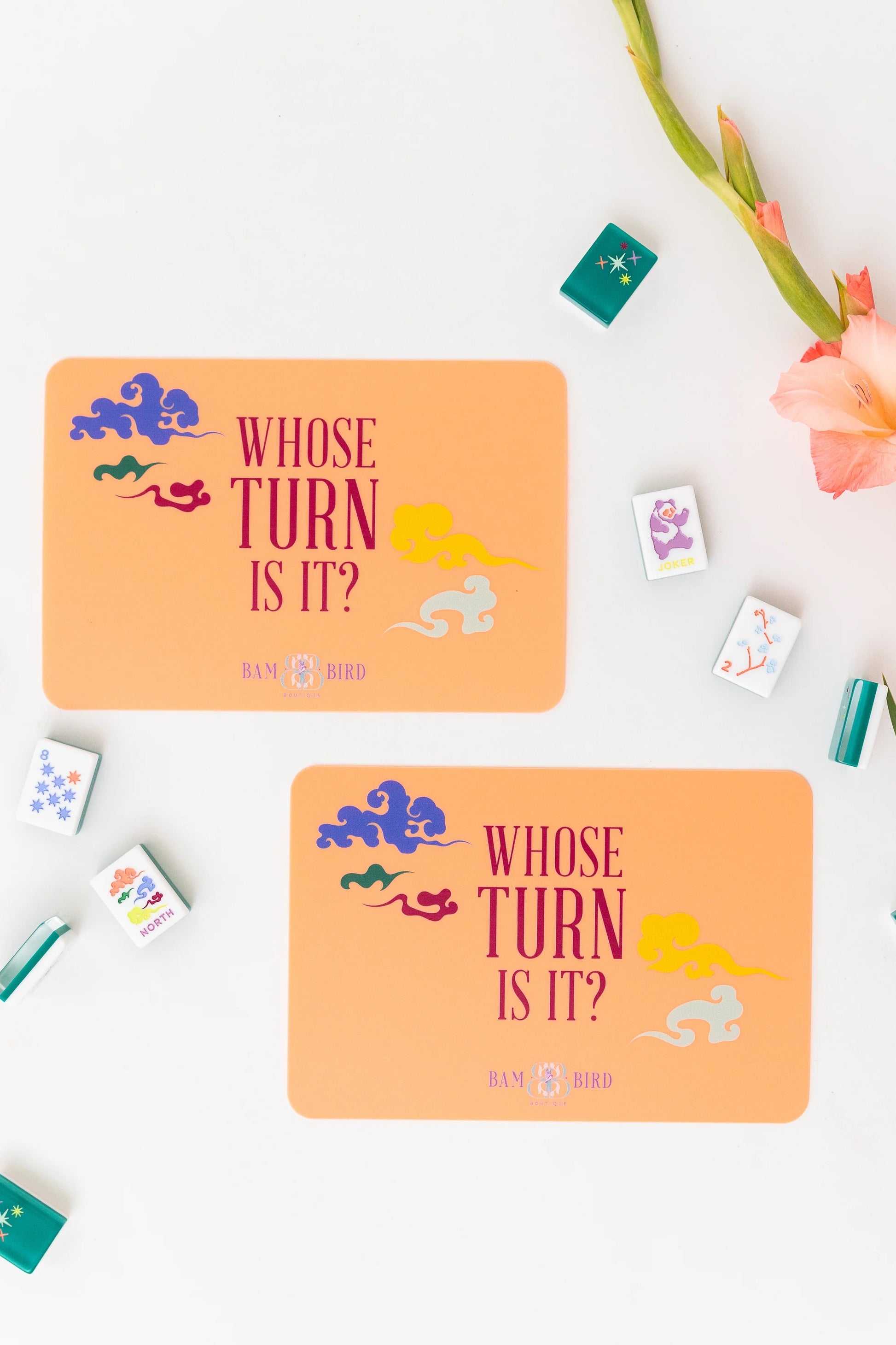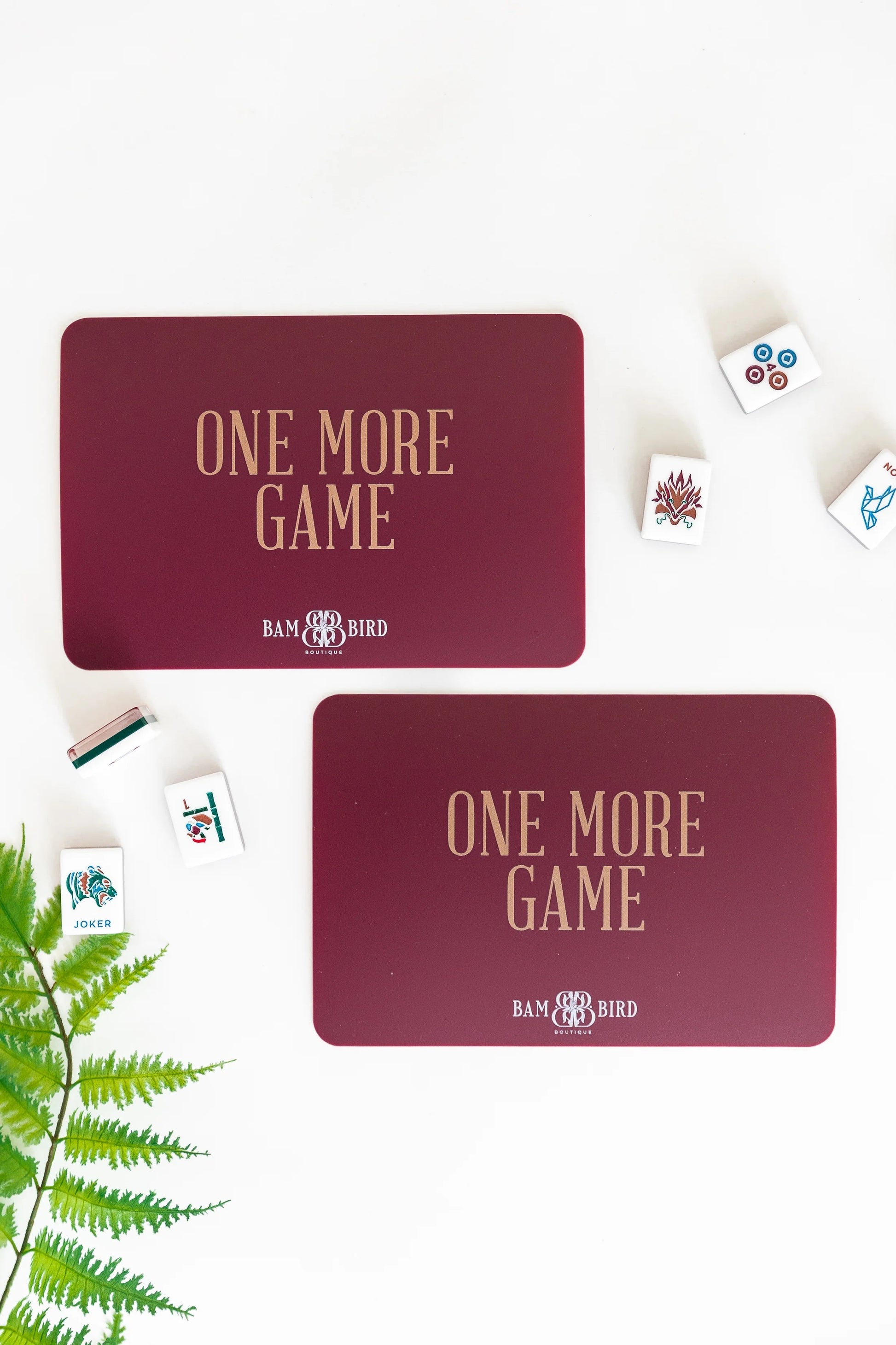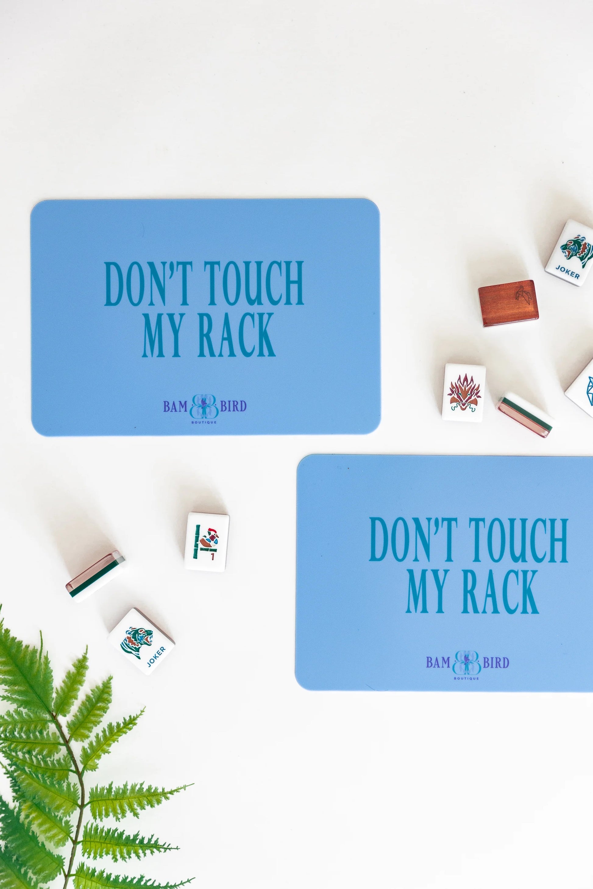 You could use your hands or your playing card to shuffle the tiles, but why risk chipping your manicure or bending your card when you could use these handy tile shufflers that make shuffling the tiles a breeze. The shufflers will easily slide in our leather card clutch for safe keeping!
