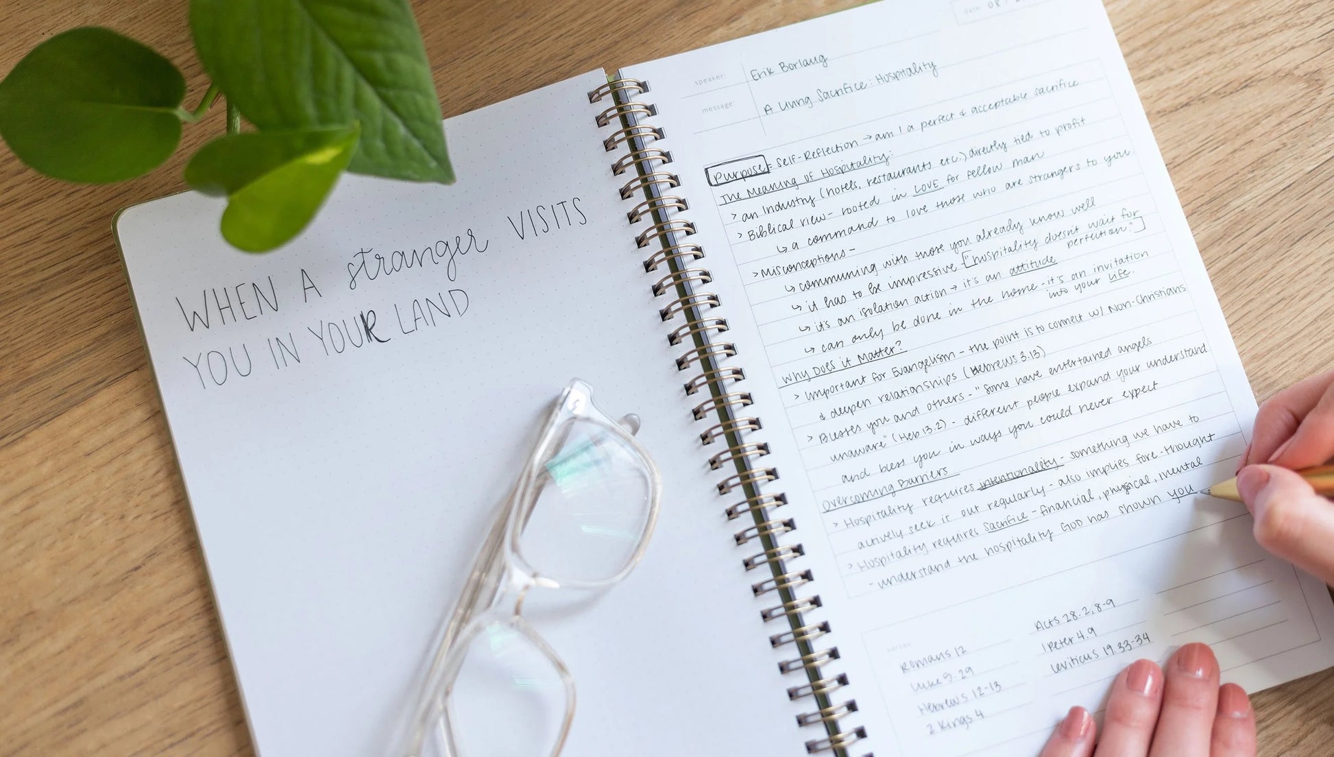 With a classic navy cover accented by elegant gold foil, this notebook blends simplicity with sophistication. Inside, you'll find 150 lined pages to capture key takeaways, personal insights, and meaningful scriptures. A pocket page offers space to store church bulletins or keepsakes, while three art print pages add an extra touch of beauty and encouragement.