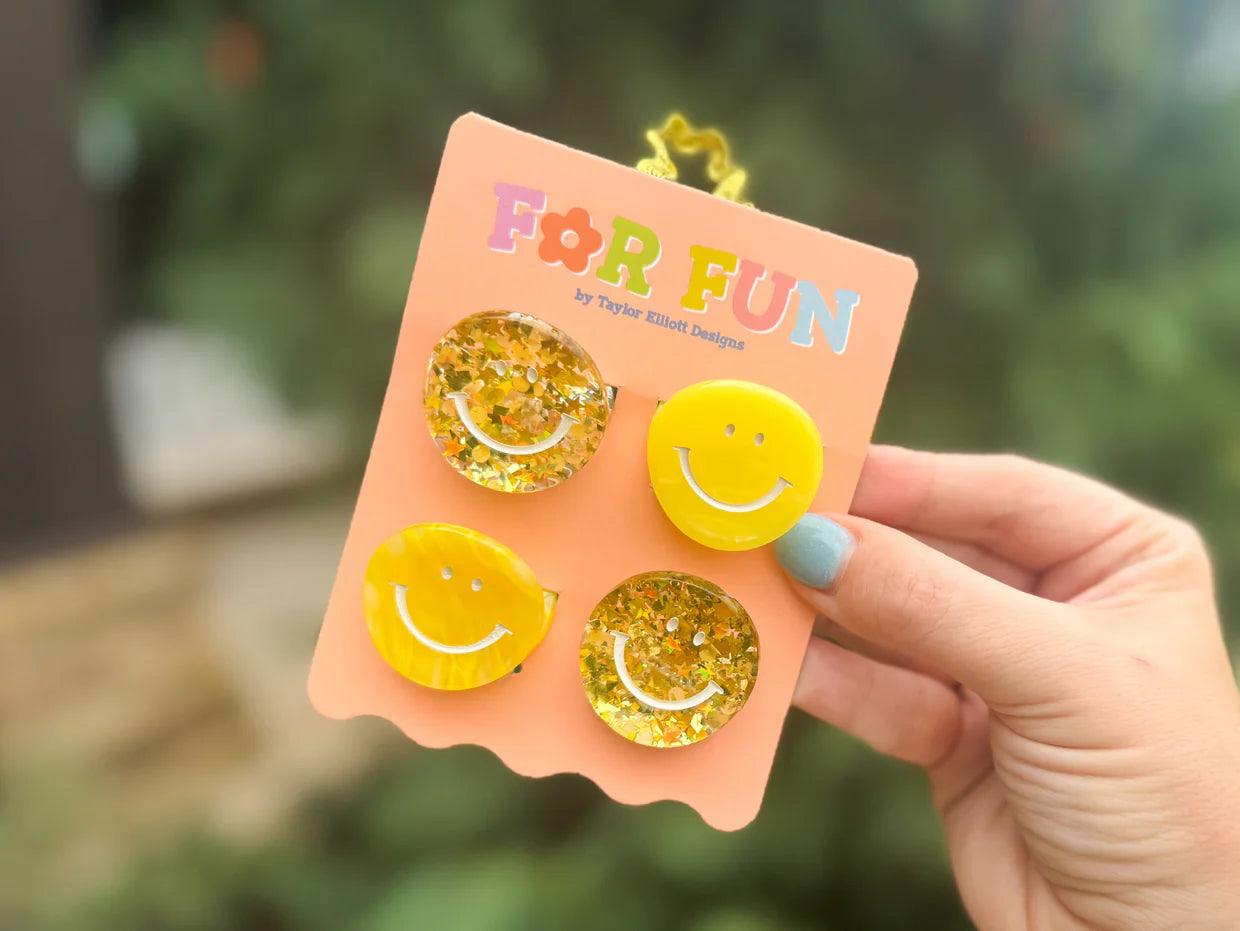 Add a playful touch to your hairstyles with the For Fun Smiley Hair Clip Set. Designed for easy wear and secure hold, these vibrant clips brighten any look while keeping hair neatly in place.