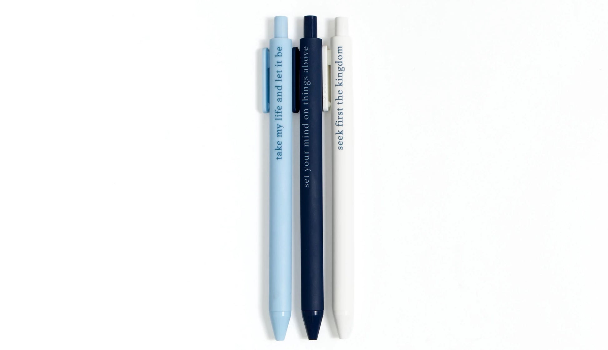 Perfect for Bible study, journaling, or quiet time notes, the Student Pen Set is both purposeful and inspiring. Each smooth-writing pen features a Scripture-based phrase to keep your heart centered on truth—“take my life and let it be,” “set your mind on things above,” and “seek first the kingdom.” Whether you’re a student of Scripture or gifting to one, these pens make a thoughtful addition to any faith-filled stationery collection. Ideal for teens, college students, or anyone deepening their walk with God. Pair them with a Bible journal, planner, or devotional for a meaningful gift set.