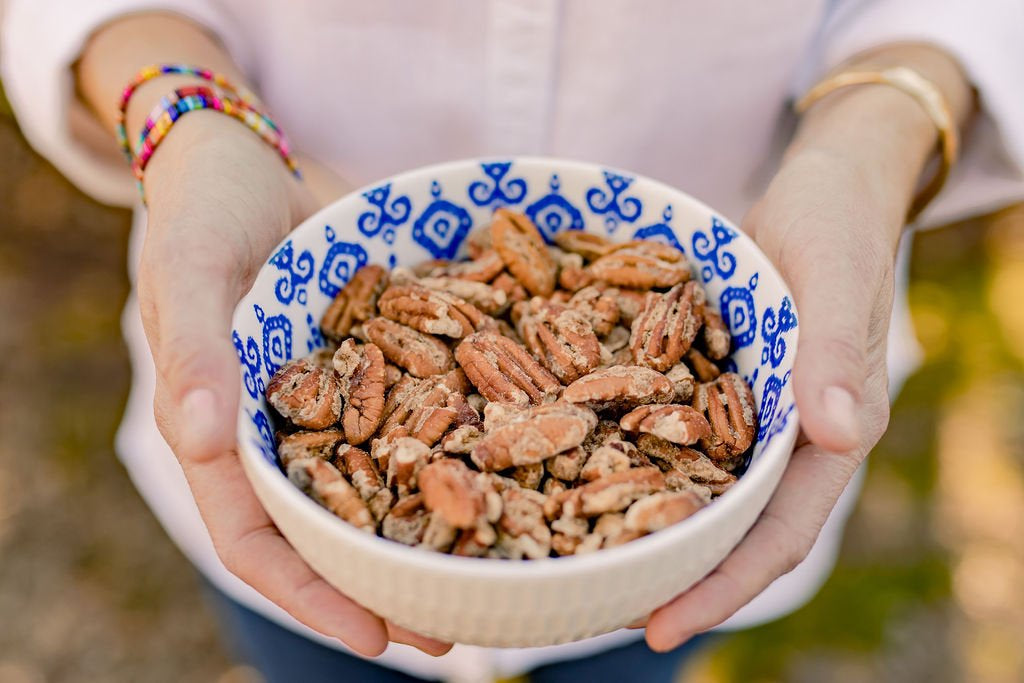 Sweet and Spicy Pecans are an indulgent blend of sweet and heat, perfectly balanced so you get a kick without breaking a sweat. It’s really all about the warm flavor profile. They can be a little sassy, especially hard to escape from once you get a taste!