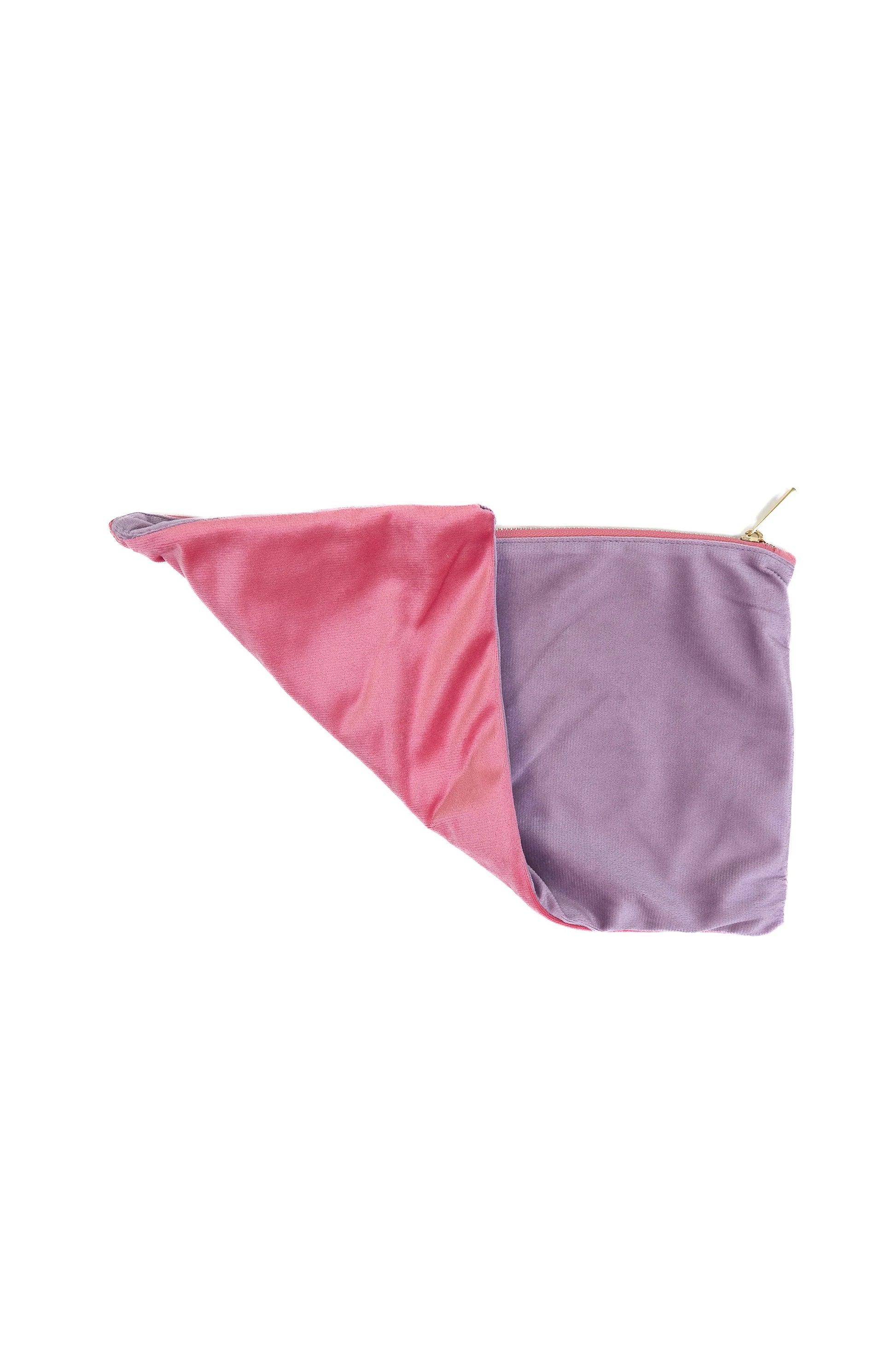 Color options: lavender/pink, hot pink/pink, teal/pink. All bags have a hot pink velvet interior.